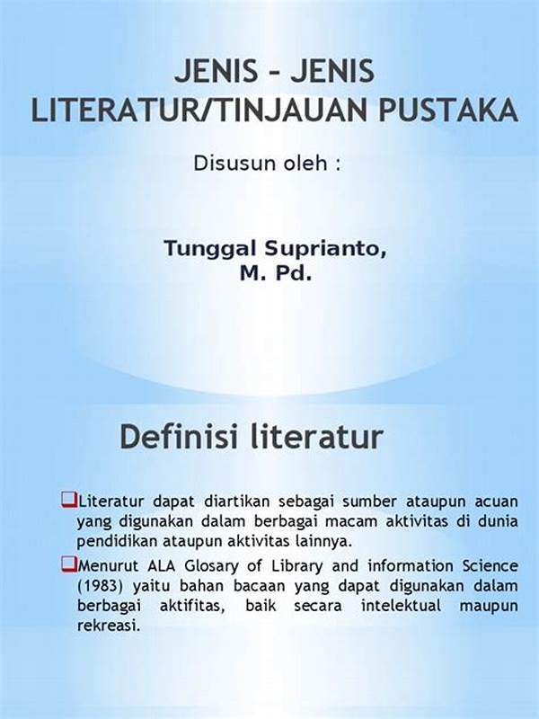Apa itu literatur? Apakah sekadar tulisan? Atau lebih dari itu? Literatur adalah sebuah seni, manifestasi dari pikiran dan perasaan yang dituangkan dalam berbagai bentuk tulisan. Ketika kita berbicara tentang jenis-jenis literatur, kita membahas mengenai sebuah koleksi tak berujung dari pemikiran dan narasi yang berfungsi untuk mendidik, menginspirasi, dan menghibur pembaca. Buku, puisi, dan naskah drama adalah beberapa contoh nyata dari jenis-jenis literatur yang bisa kita temui sehari-hari.